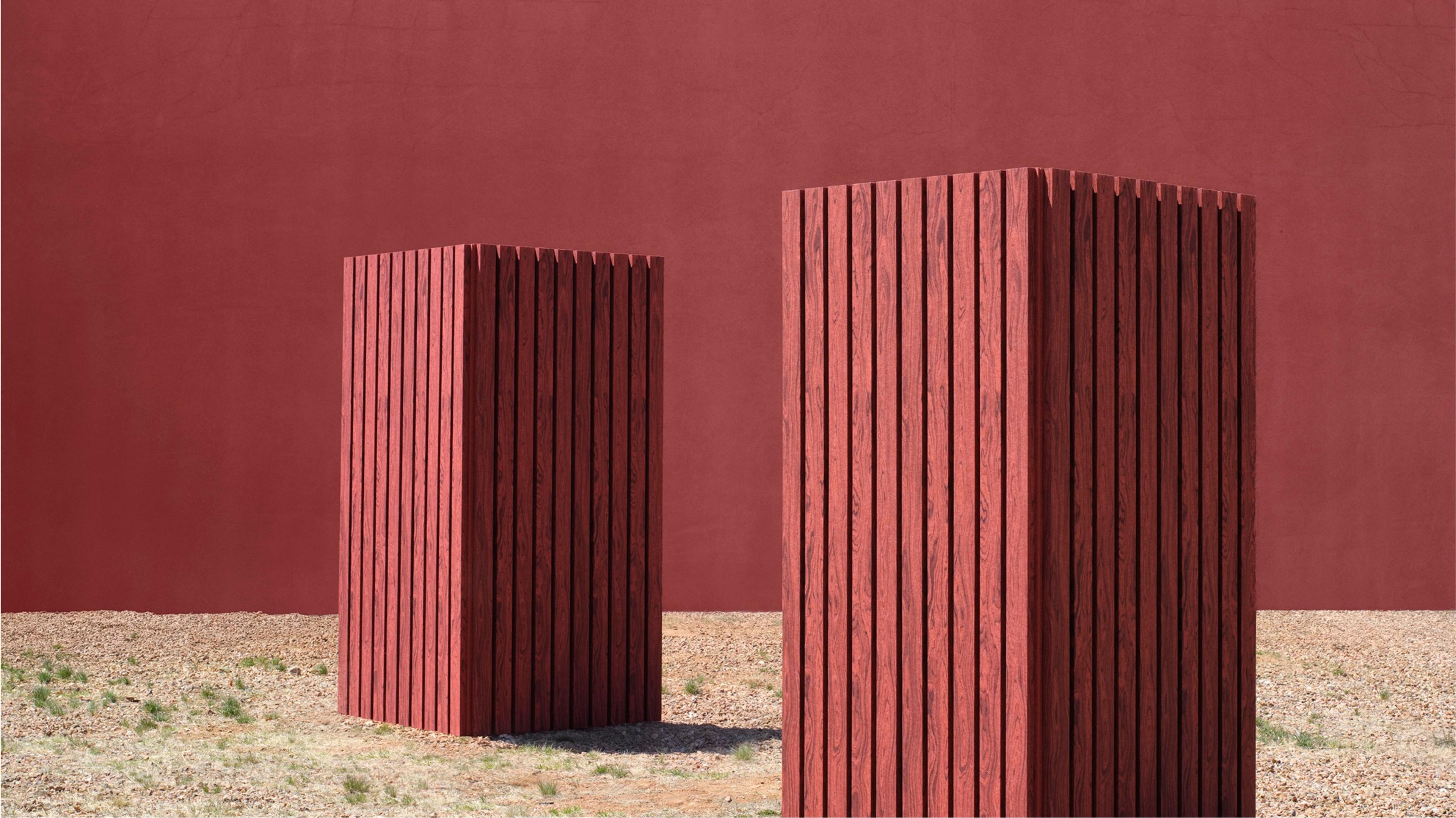 The Wood Textures collection is offered in a curated palette of 32 hues and three veneer-inspired patterns, each an homage to classic milling techniques. Rift offers clean, linear precision; Rotary brings expressive swirls and burls; and Flat balances understated movement and depth. To achieve these detailed patterns, we utilize UV-cured, water-based ink that’s digitally printed onto our 9mm PET felt. From these considered options, creative opportunities abound. When paired with our Black felt, for example, the use of white ink evokes the traditional Japanese wood-burning technique of shou sugi ban.