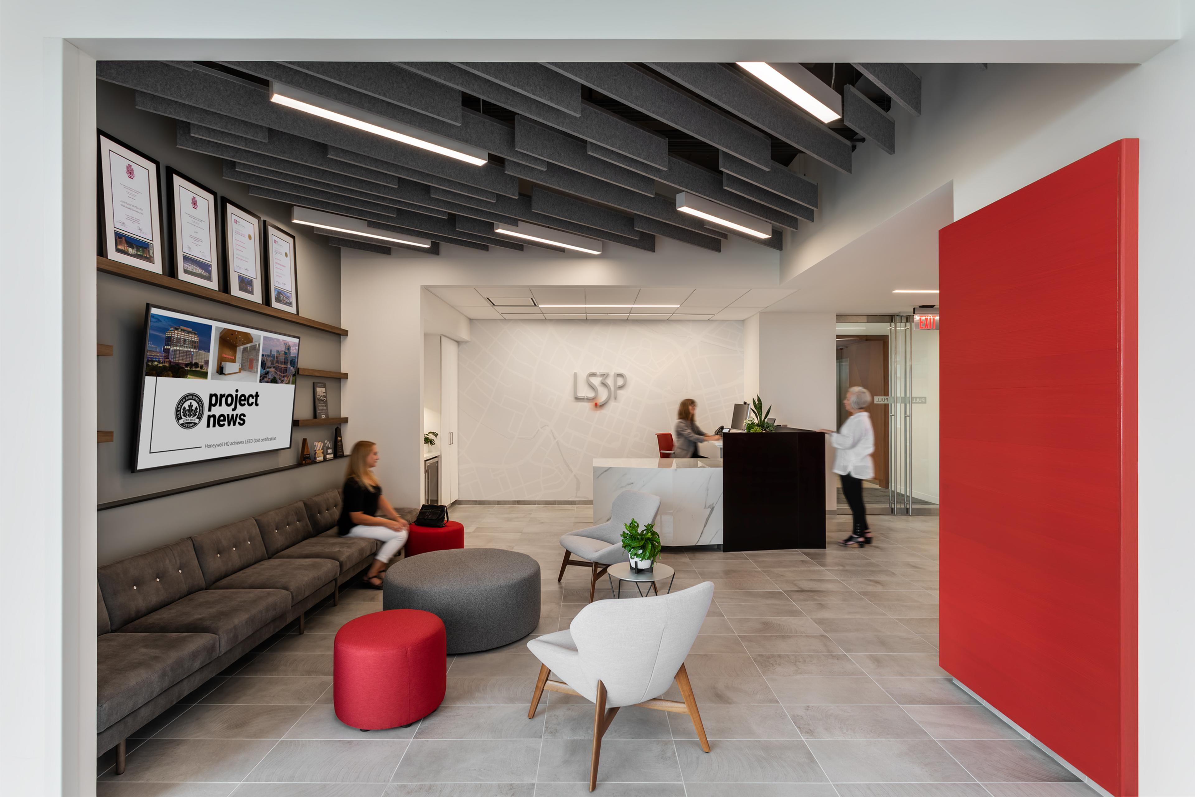 We collaborated with LS3P to keep the architecture firm's Greenville office quiet. Covered by our Beam LED baffles and custom ceiling tiles, our solutions were made to keep workspaces adequately lit and hush office chatter. These products throughout the office allow the firm to focus on their design projects and client relations without distraction.