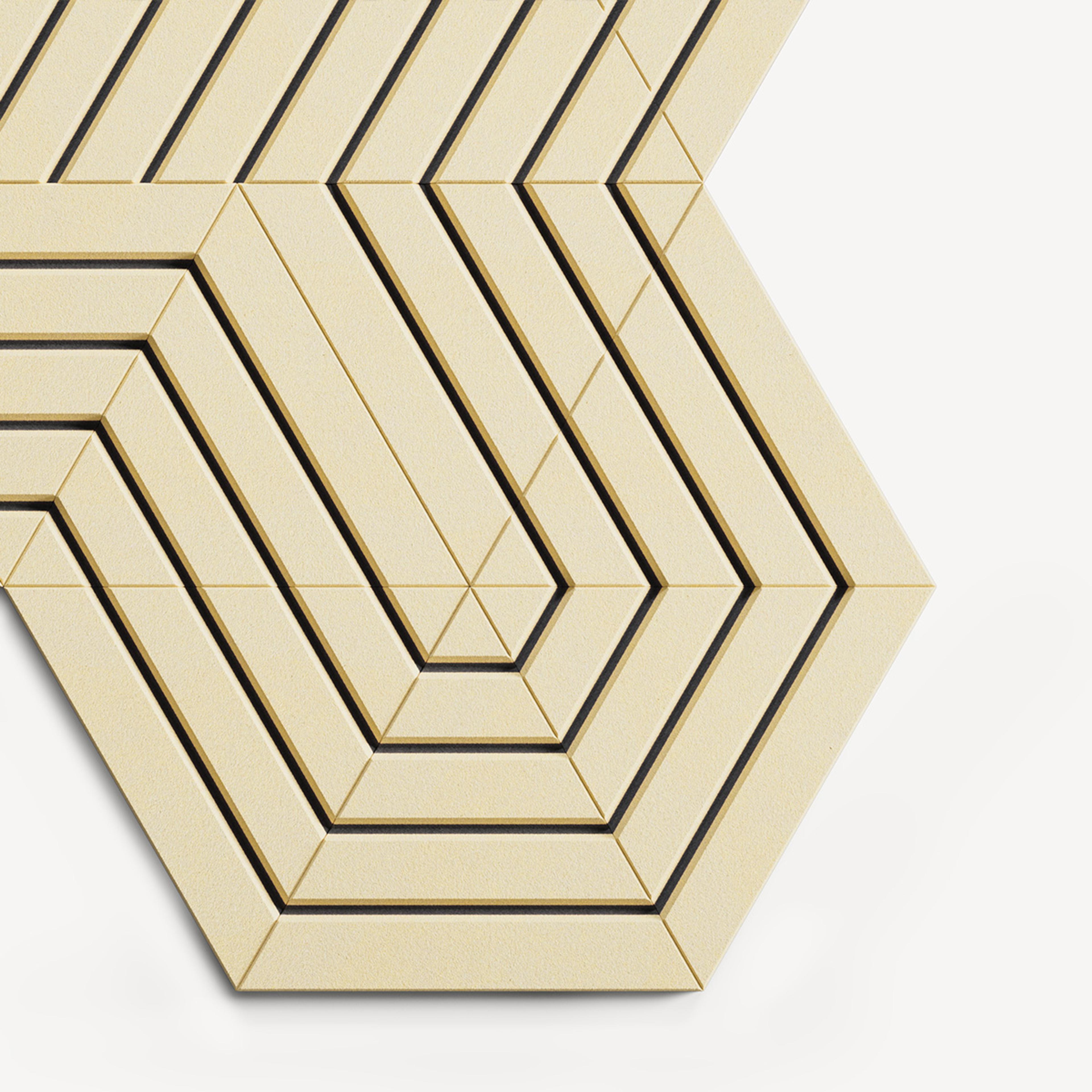 Edgy and ornate, Delta does it all. Exacting linear etchings come together in this carved wall tile, with single-color or two-tone styles available. Dimensional in every sense, Delta displaces sound while engraving your space in every visitor's memory.