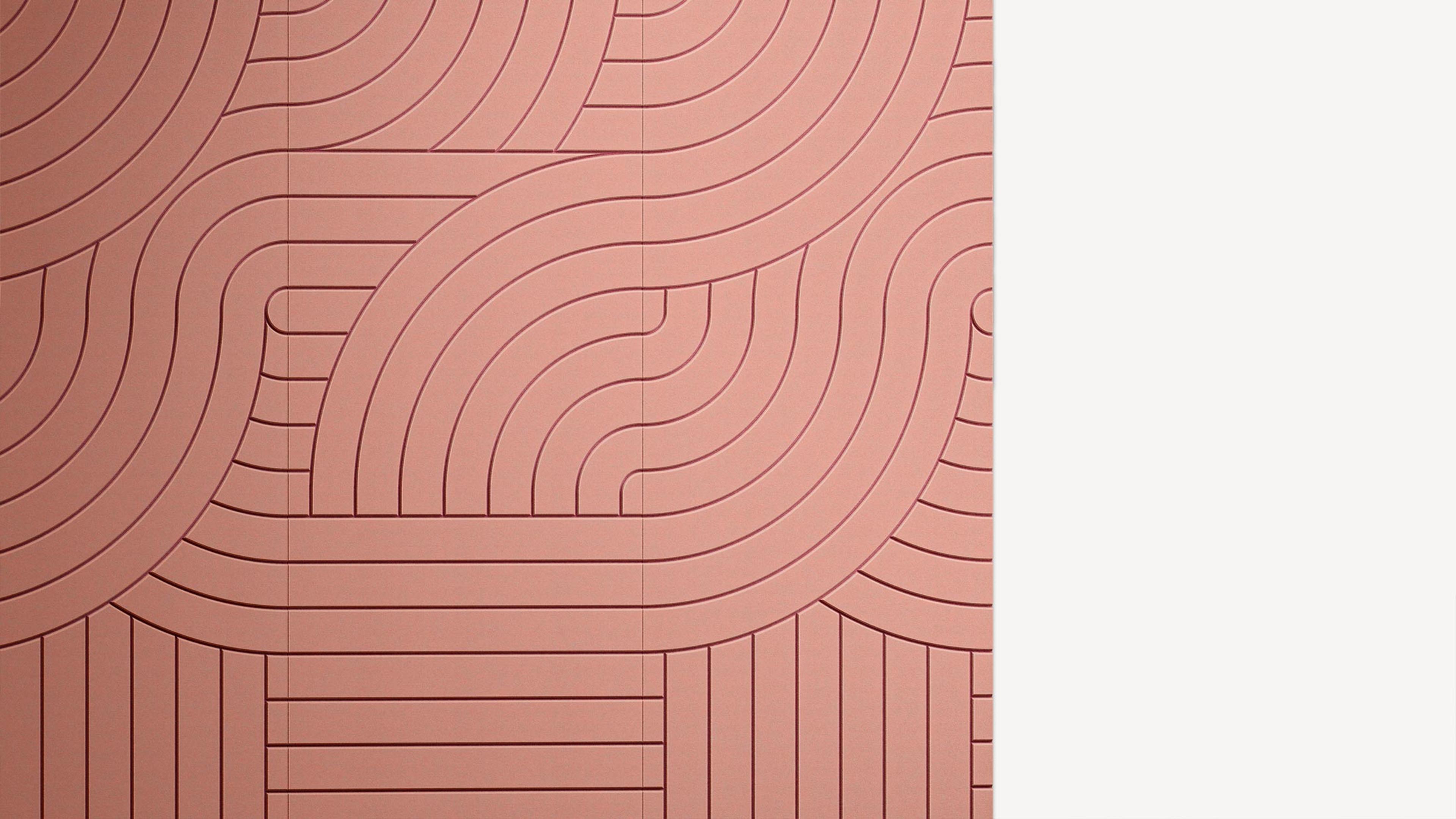 A playful wallscape of sweeping arcs and carved curves